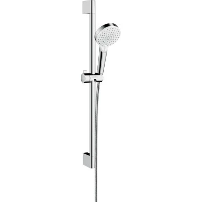 Das Crometta Vario Set ist durch den schicken Weiß-Chrom-Look ein Hingucker in jedem Badezimmer. Das Brausestangenset kann mit vielen verschiedenen Armaturen kombiniert werden.
