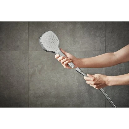 Durch Hansgrohe QuickClean, die Antikalk-Funktion für Duschköpfe und Armaturen entfernen Sie Kalkablagerungen auf den Silikondüsen schnell und einfach per Hand.
