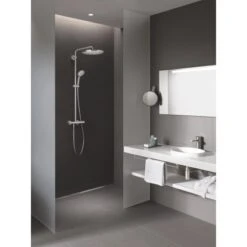 Idealrain ist ein vollständiges Brauseprogramm mit allen Komponenten zur Ausstattung eines schönen und komfortablen Duschbereichs. Dazu zählen zum Beispiel Handbrausen mit Navigo-Umschaltung und formschöne Kopfbrausen.