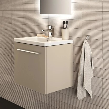 Der Ideal Standard Möbelwaschtisch aus der Serie Ideal Standard i.life S ist eine platzsparende Lösung, die Ihr Zuhause bereichert. Die Kollektion entstand in Zusammenarbeit mit dem preisgekrönten Studio Palomba Serafini Associati. Die rechteckige Form mit klaren Linien und weich abgerundeten Kanten setzt sich dabei gekonnt in Szene. Optisch überzeugt das Design in klassischem Alpin Weiß und einer glanzvollen Oberflächenoptik. Der Möbelwaschtisch wurde aus hochwertigem und robustem Feinfeuerton gefertigt, damit Sie lange Freude an Ihrer neuen Keramik haben.
