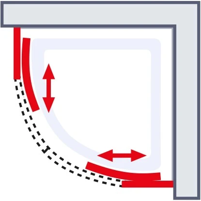 Die Kabine setzt sich aus insgesamt sechs Echtglaselementen zusammen. Zwei Schiebetüren, welche an zwei feststehenden Elementen montiert sind, sowie zwei Rückwände in elegantem Grau. All diese Elemente bestehen aus 4 mm starkem, nach DIN Norm EN 12150 gefertigtem, Einscheibensicherheitsglas. Dieses spezielle Echtglas zeichnet sich insbesondere durch seine hohe Widerstandskraft gegenüber äußeren Einwirkungen aus.