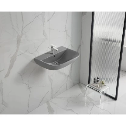 Der VerosanPro Waschtisch Rivo 60 cm Matt Hellgrau besticht durch sein modernes, ästhetisches Design mit abgerundeten Ecken und beeindruckt durch den neuen Trend in matter Farbe. Das Waschbecken besteht aus Sanitärkeramik und überzeugt durch die pflegeleichte Oberfläche. Eine Wandbefestigung ist nicht im Lieferumfang enthalten.